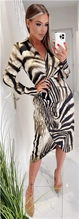 Ax Paris Brown Printed Wrap Dress With Shoulder Pads