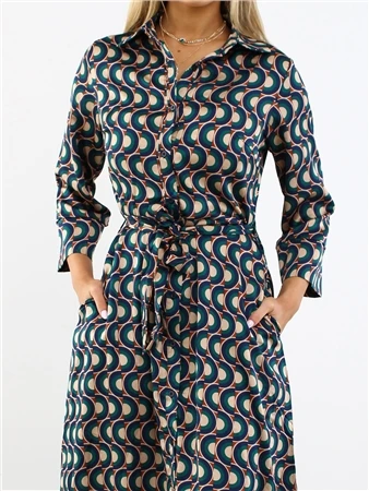 Ax Paris Green/Gold Pattern Midi Shirt Dress