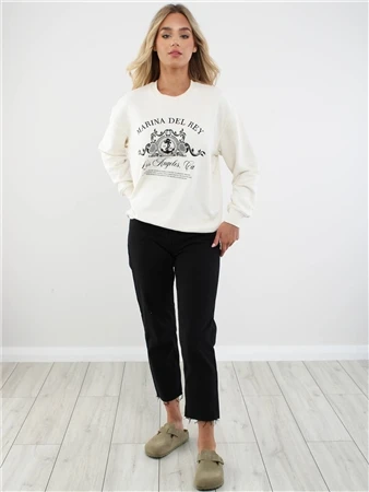 - Cream crew neck sweater
