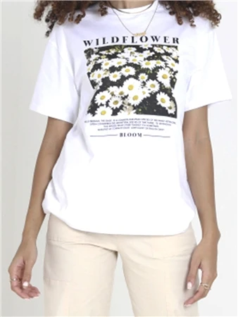 Brave Soul White Graphic Flower Printed Short Sleeve T-Shirt