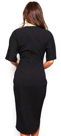 Girl In Mind Black Chelsea Half Sleeve Wrap Detailing Midi Dress