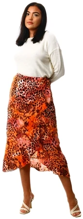 Girl In Mind Orange Animal Emily Frill Detail Wrap Skirt