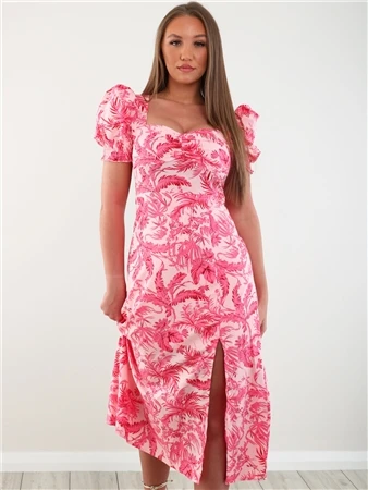 Girl In Mind Pink Floral Lillian Sweetheart Midi Dress