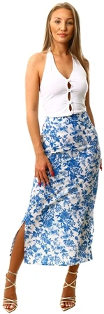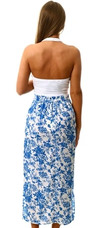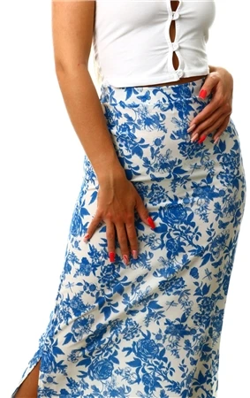 Girl In Mind White / Blue Floral Azalea Midi Skirt