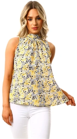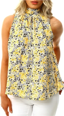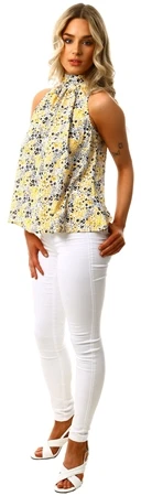 Girl In Mind Yellow Animal Paris Tie Back Halterneck Top