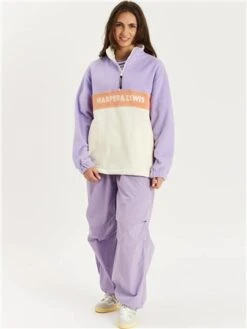 Harper & Lewis Lavender / Peach / Cream Colour Block Primula 1/4 Zip Fleece