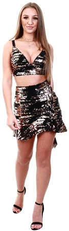 Missi London Black/Gold Sequin Mini Frill Skirt