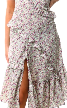 - Midi length with leg split and frill detailing