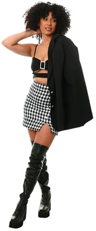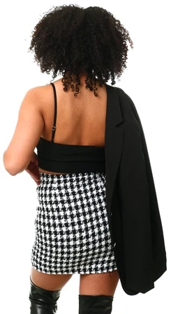 Parisian Black / White Houndstooth Button Mini Skirt