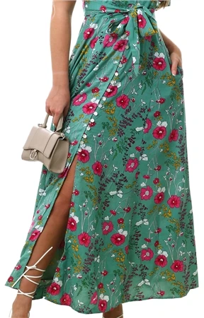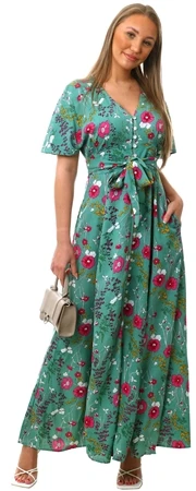 Qed Mint Floral Pattern Print Button Maxi Dress