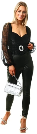 Saint Genies Black Velvet / Lace Long Sleeve Top