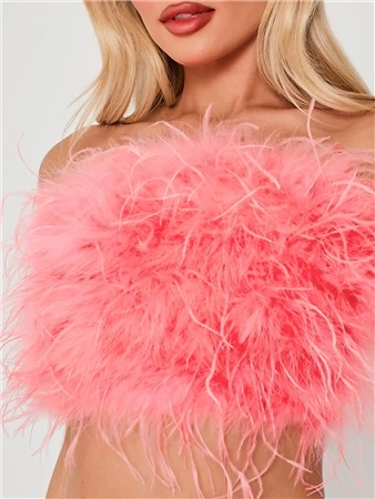 Have all eyes on you in our feather crop top! Featuring a strapless neckline and feather trim, you’ll definitely stand out this party season!