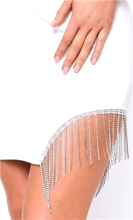 Make them stare this season in our Diamanté Mini Skirt! Featuring an asymmetric detail and a gorgeous diamanté trim, it’s a must have to add to your wardrobe for the upcoming festive season!