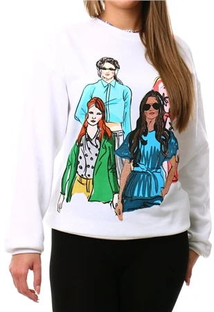- White crew neck sweater